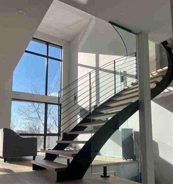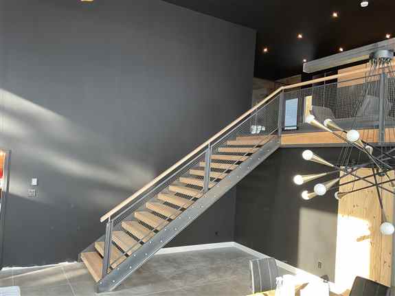 Nous fabriquons des composantes d’escaliers sur mesure, offertes sous forme de kits complets prêts à assembler. Tout commence par la conception : chaque escalier est d’abord dessiné en 3D, ce qui permet de le voir sous tous les angles et de valider chaque détail avant la fabrication.Images du produit: