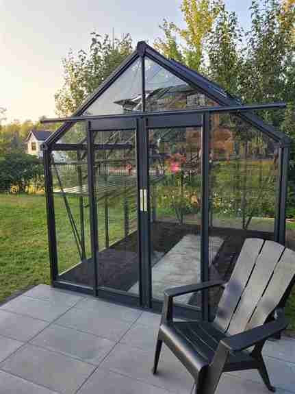 Entreprise de vente et d'installation de serres à jardin en aluminium et verre trempé robustes et élégantes pour les particuliers conçues pour le climat Québécois.Images du produit: